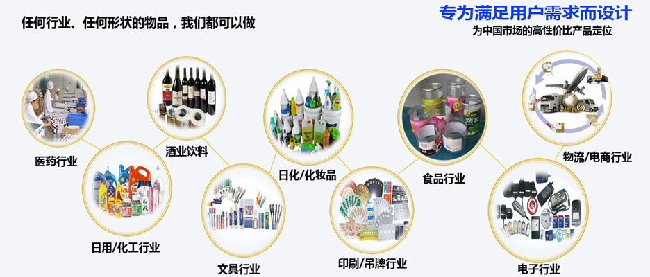 本設備廣泛應用于各種規格的圓柱形物體貼標,小錐度圓瓶貼標,可實現全周/半周貼標、圓周正背面貼標, 正背標間距可任意調整。可選配圓周定位檢測裝置,實現圓周定點貼標;可選配色帶打碼機和噴碼機,貼標同時打 印生產日期、有效期、批號等信息,減少包裝工序,提高生產效率。設備穩定性高、貼標效果好,貼標精度±0.5mm。
