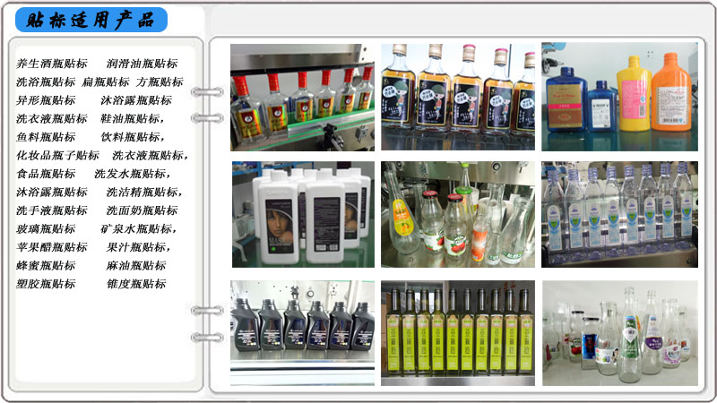 本 設備 適用于 食品、醫藥、日化、化狀品、精細化工 及其它輕工行業中的穩定 可站立 低重心 扁瓶、方瓶、橢圓形瓶、異形瓶、圓瓶或近似圓瓶 包裝容器外表面 單側面、雙側面、圓周自動貼標 .